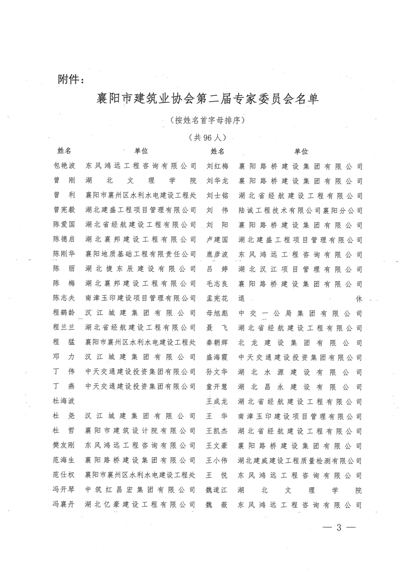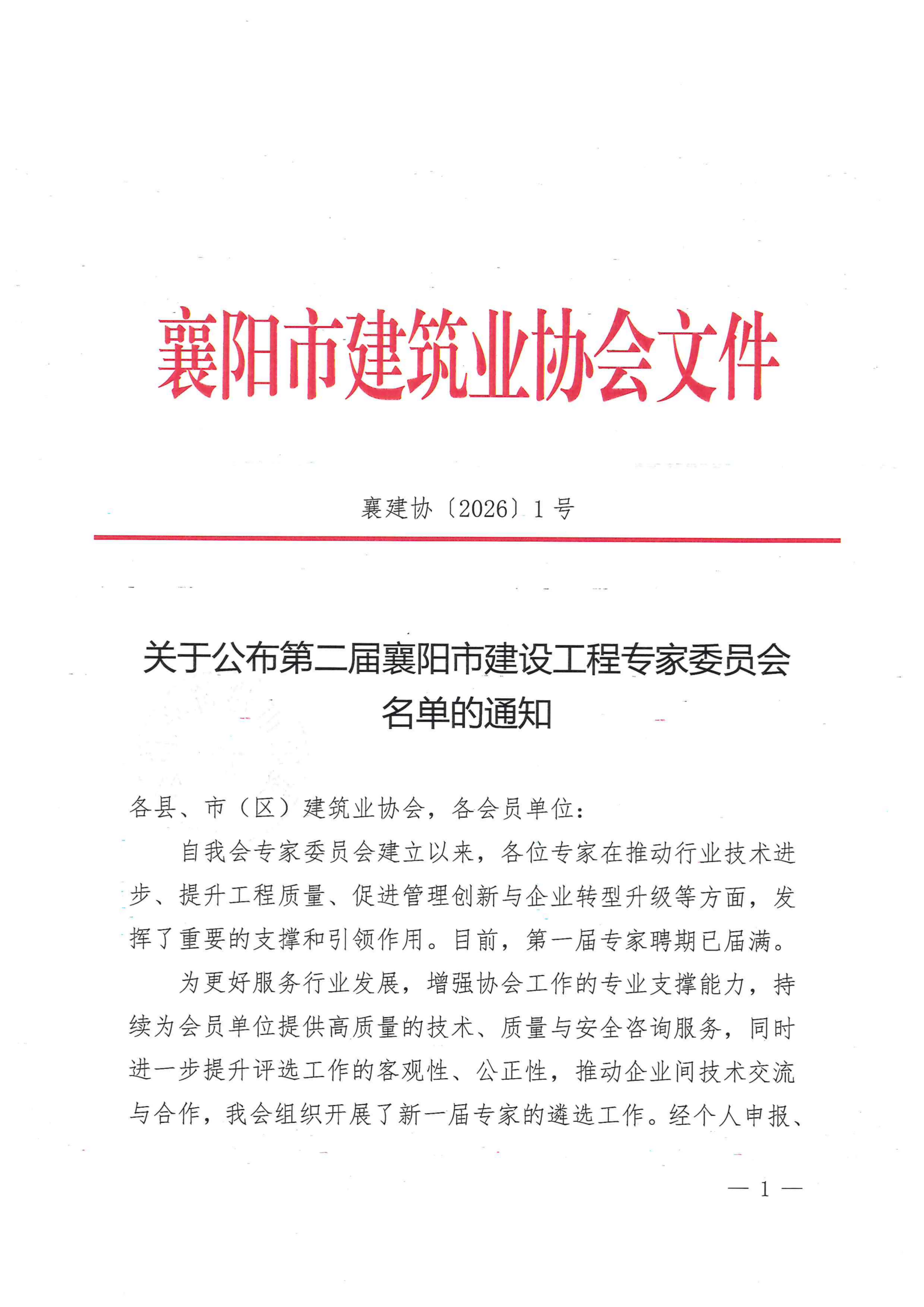 关于公布第二届襄阳市建设工程专家委员会名单的通知