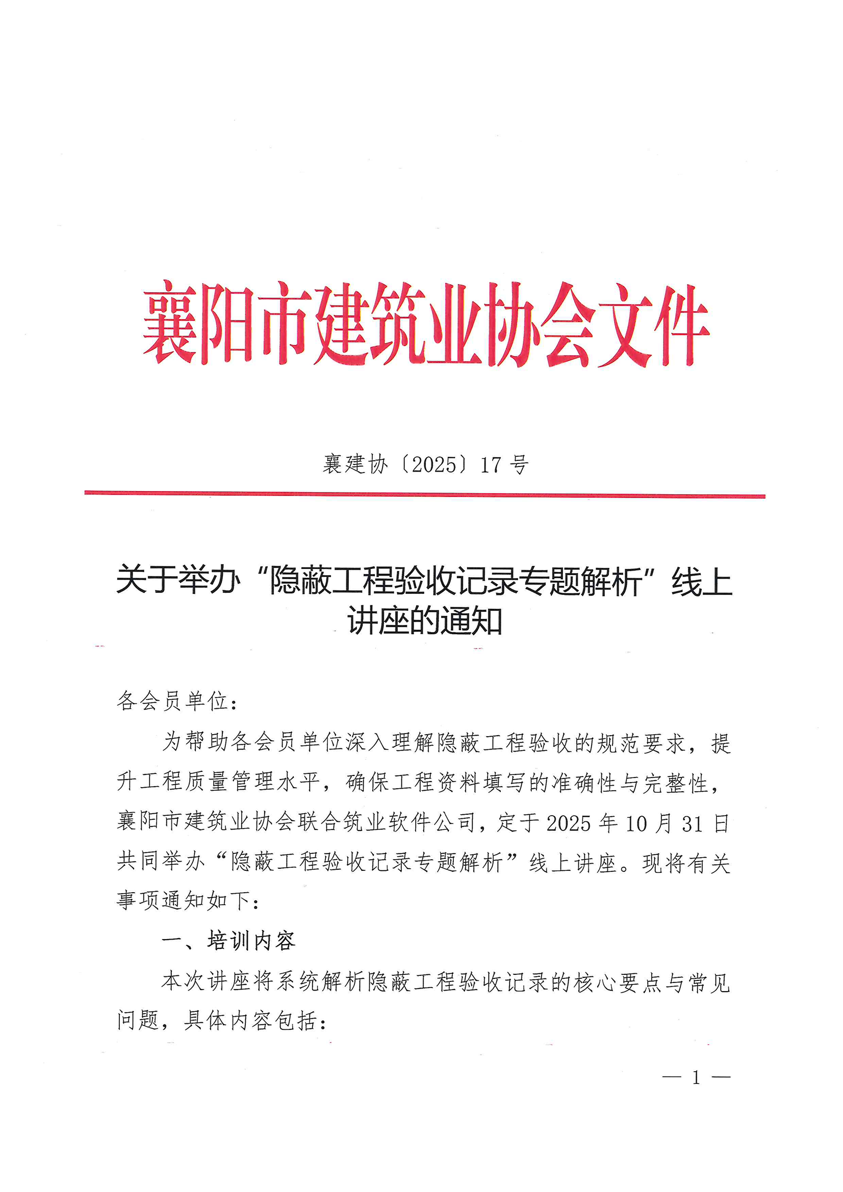 关于举办“隐蔽工程验收记录专题解析”线上 讲座的通知